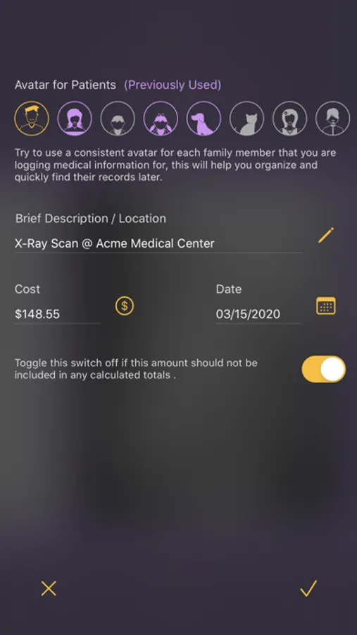 This app does not request any patient names or identifying information, instead, you simply select fun avatars for each family member.