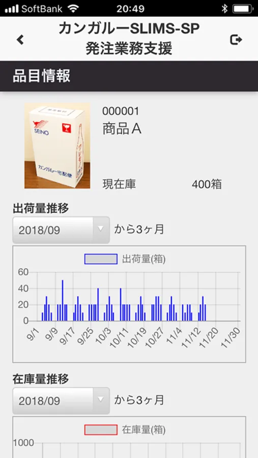 出荷数・在庫数の推移をグラフ表示で確認出来ます。