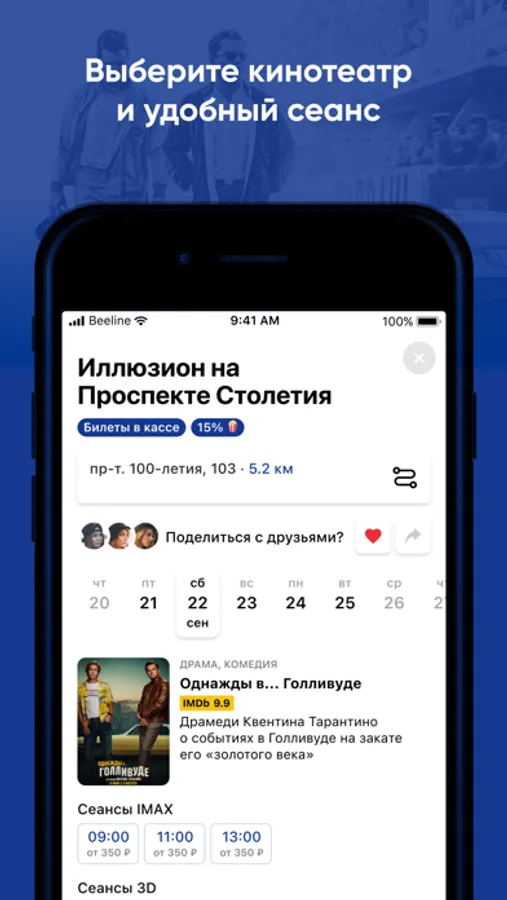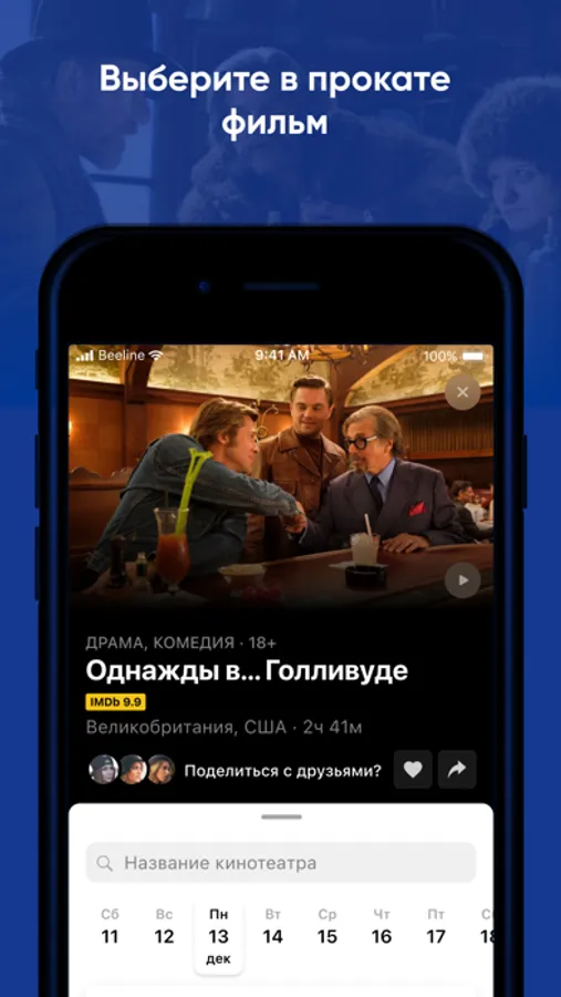 - Выбор ближайшего кинотеатра с учетом вашего местоположения