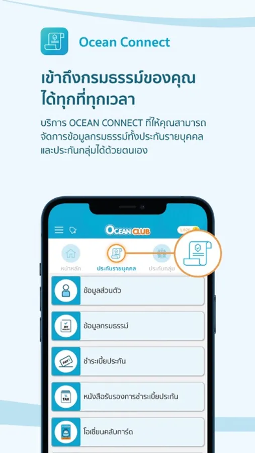 Ocean Club Application from Ocean Life insurance Public Company Limited is especially made for Ocean Life customers to serve digital lifestyle. Everyone can easily access top class privileges and exclusive activities. Enjoy the app by collecting points (Ochi Coin) to redeem special deals and offers from more than 250 Ocean Club Partners through “Shop-Chim-Chill” activities nationwide. Moreover, be able to access our online services which will help facilitate our members more easily with their policy information, networked hospital and much more.