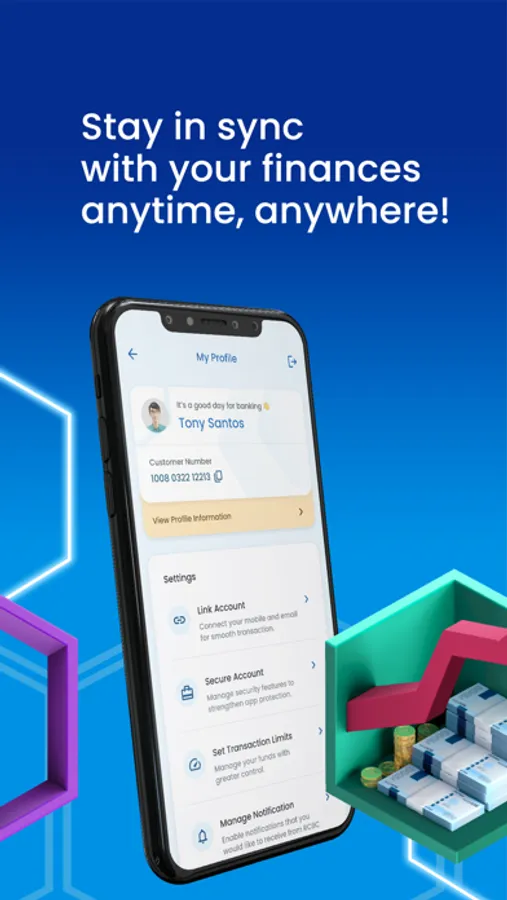 Be in full control of all your accounts such as current and savings accounts, MyWallet prepaid card, credit card, and loans.