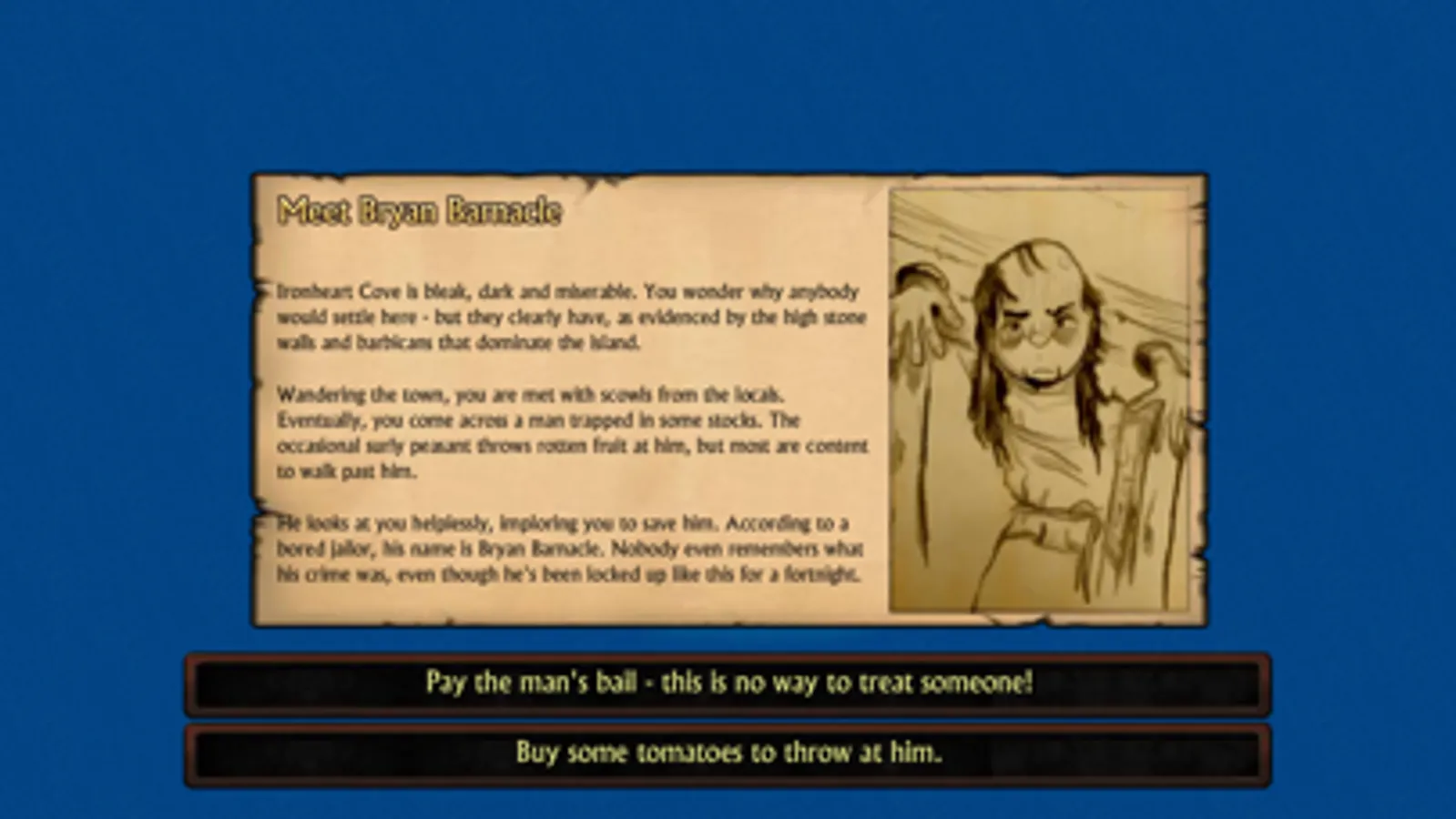 * Over 50 Choose your own adventure style mini quests, from fleeing cannibals to getting into tavern * brawls with drunken sailors