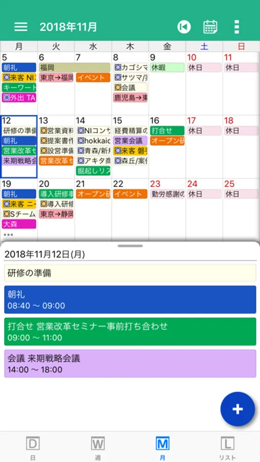 アプリ内に一時的なスケジュール登録や、ダウンロードしているスケジュール情報より、お客様への連絡などが可能です。