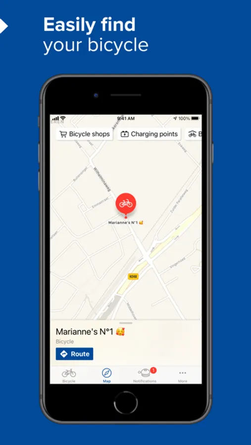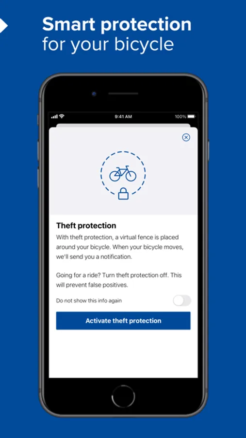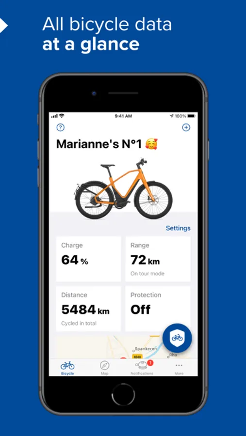 Protect your bicycle against theft with the app. If a thief does manage to get away with your bicycle, you will receive a notification.