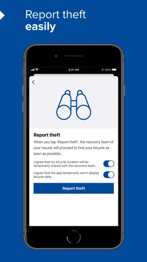 Has your bicycle been stolen? You can report the theft easily using the app. The recovery team will then start a search for your bicycle. The insurer will then keep you updated.