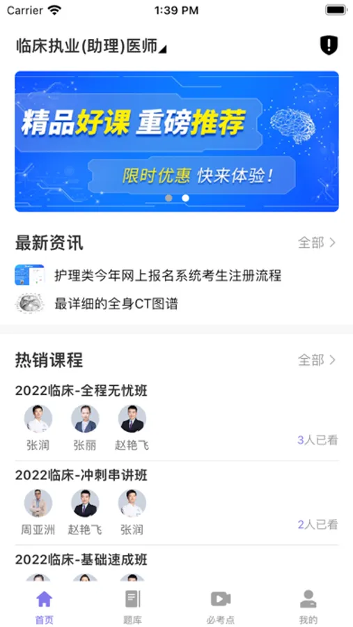 必胜医考——为医考学子考试助力。应用内可以在线观看视屏课程,考试答题,观看直播等学习方式。