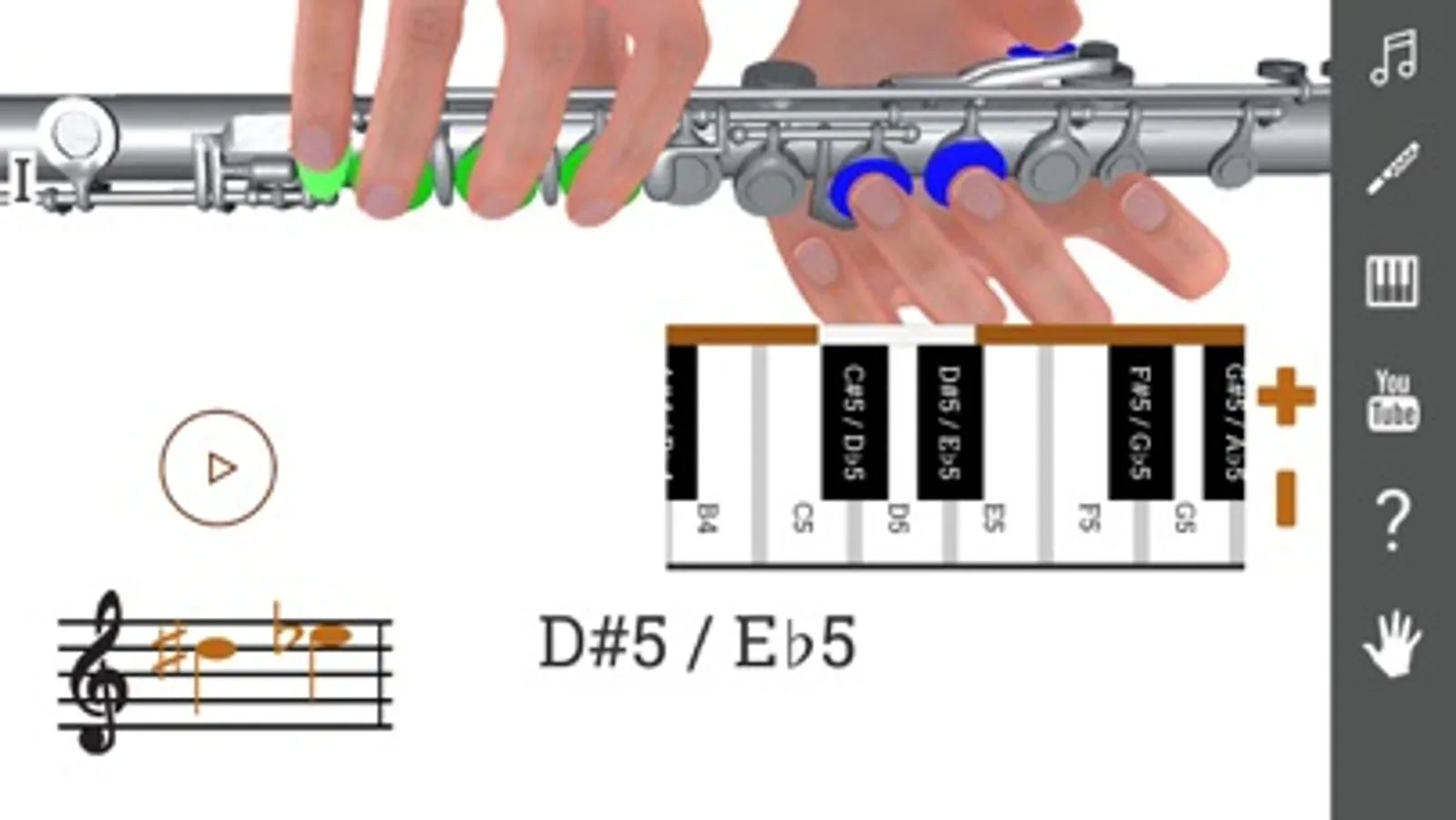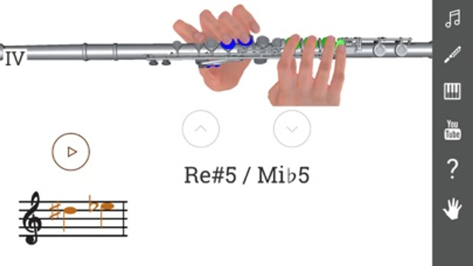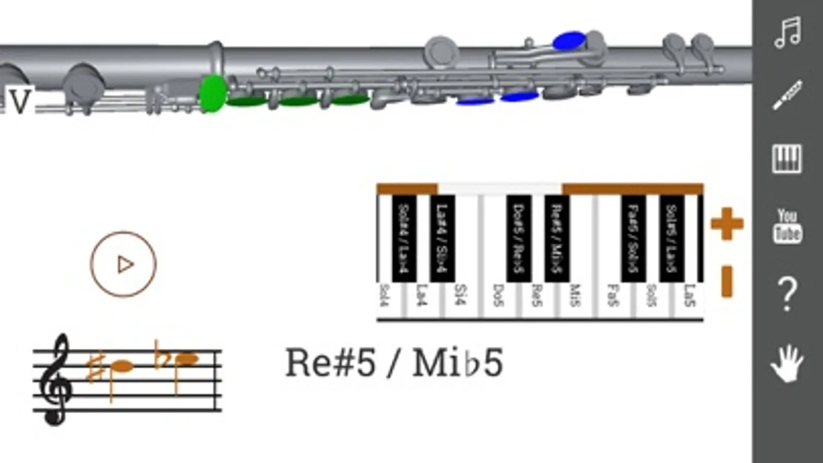 3D Flute Fingering Chart - How To Play the Flute shows you the position of the fingers on the instrument. You can hear the sound of each musical note. There is a demonstration by 3d models, so you will learn how to play the Flute. There is a section with flute lessons. You can choose different types of flute: piccolo, flute, alto flute, bass flute. Western concert flute
