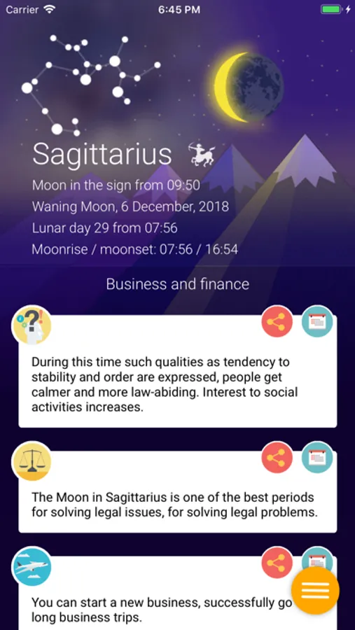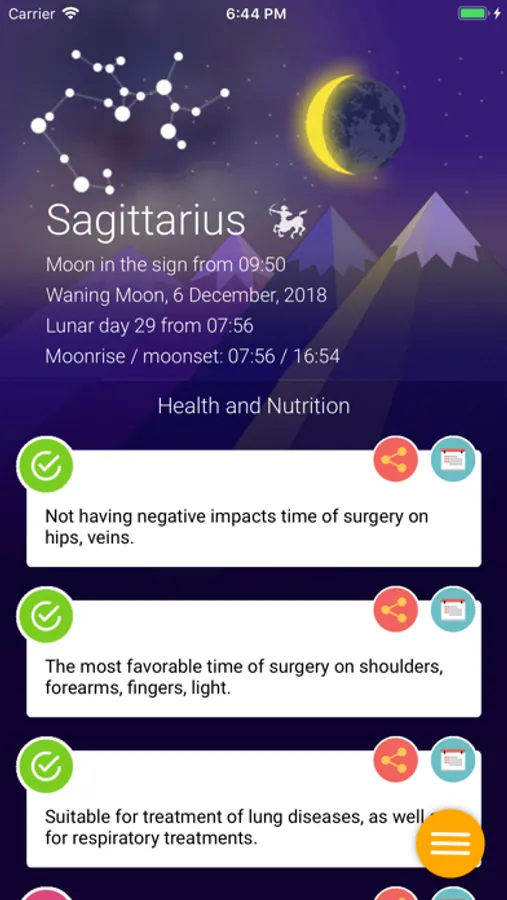 For the first time ever we’ve developed the most accurate algorithm of lunar days calculation available in the internet, so you don’t have to worry about the correctness of recommendations and you won’t miss the beginning of a lunar day.