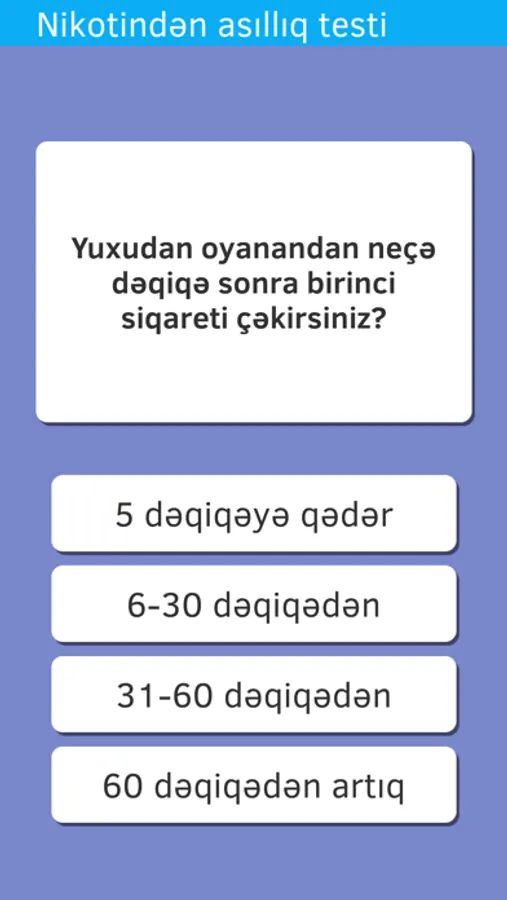 Həm də bu proqramda nikotindən asılılıq testi, tütünçəkmənin zərərləri haqqında məlumat, bununla əlaqəli yanlış düşüncələr və digər faydalı məlumatlar mövcuddur.