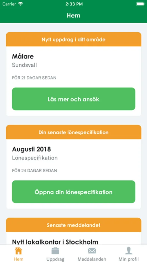 * Anmäla intresse till nya uppdrag