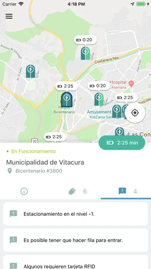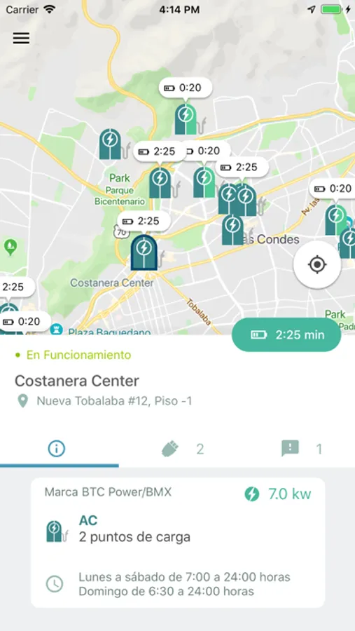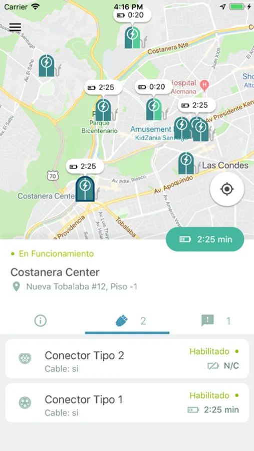En la aplicación, cualquier usuario puede visualizar en un plano, las electrolineras disponibles en Chile. A medida que aumente la red, esta aplicación incluirá más electrolineras. Un usuario puede, si así lo desea, ingresar la marca y modelo de su vehículo eléctrico, de esta manera la aplicación, le mostrará sólo aquellas electrolineras que son compatibles con su vehículo y podrá hacer una estimación del tiempo de carga en las distintas electrolineras que se despliegan en el plano.