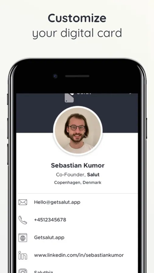 Salut will help you go completely paper-less and digitize your business cards. You can easily create a card in less than five minutes and include all relevant business information like email, LinkedIn profile, Instagram page, website and much more.