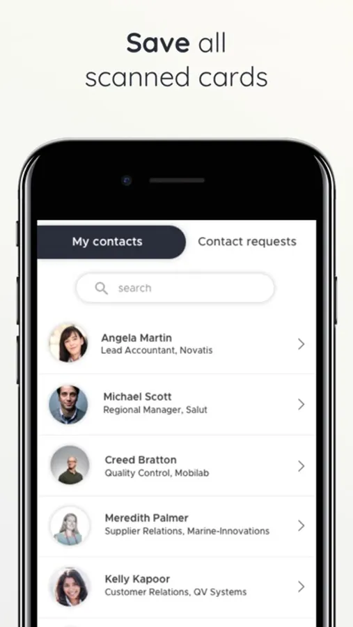 Finally, you can keep track of all your contacts inside the app. Contacts are updated in real time so if somebody changes their phone number, it will also be updated in your app.