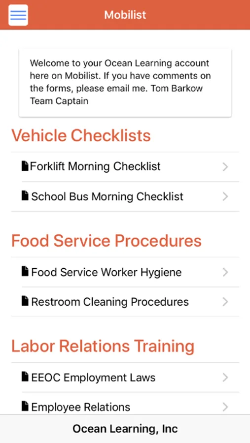 Mobilist allows for paperless flow of critical information between managers and field workers. Checklists, procedures, inspections, and training, specific to your organization, are created by you on the Mobilist.app web site. These forms become available on field worker phones after their registration on your web account.