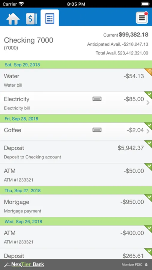 • View recent transactions, including check images
