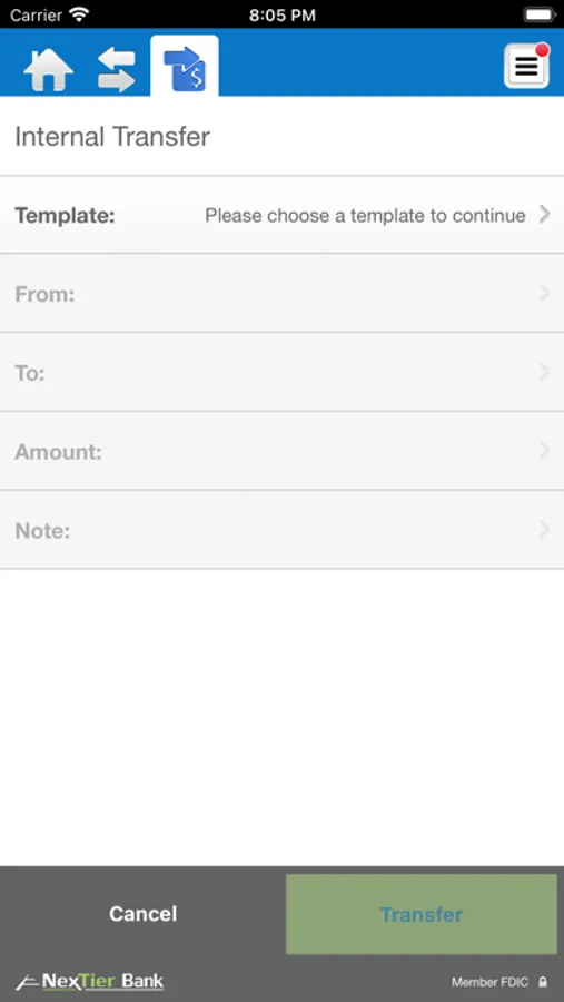 • Approve transactions scheduled through NexTier Cash Manager, including fund transfers, ACH transfers, and wire transfers
