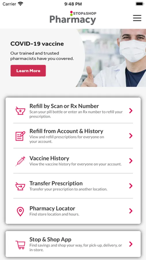 We’ve made your prescriptions even easier with the Stop & Shop Pharmacy app. In just a few clicks you can fill and manage prescriptions for your family—and even your pets. Choose automatic refills, transfer prescriptions quickly, and check out the immunizations we offer. Download the Stop & Shop Pharmacy app today.
