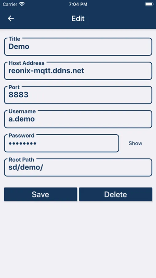 This application has the ability to subscribe to Reonix's own cloud-based MQTT server or one of your choosing.