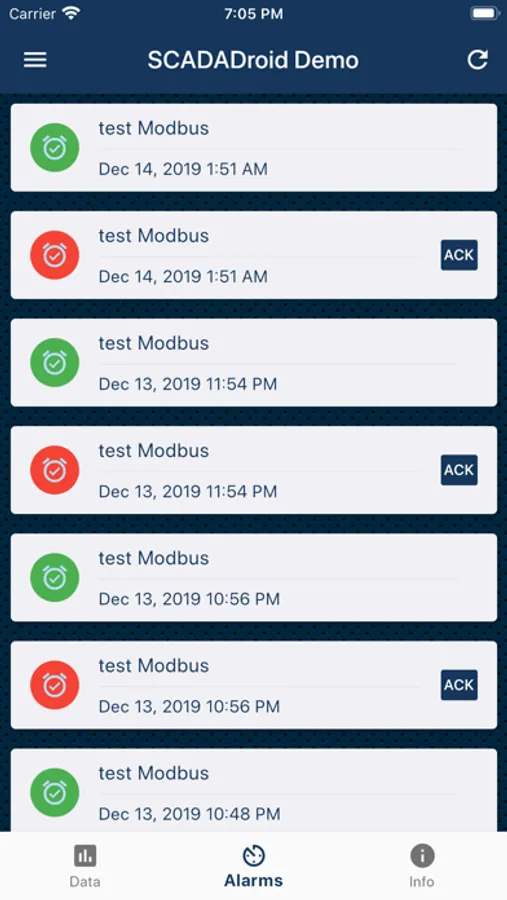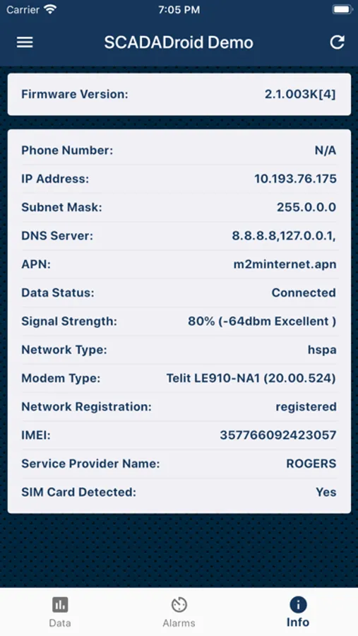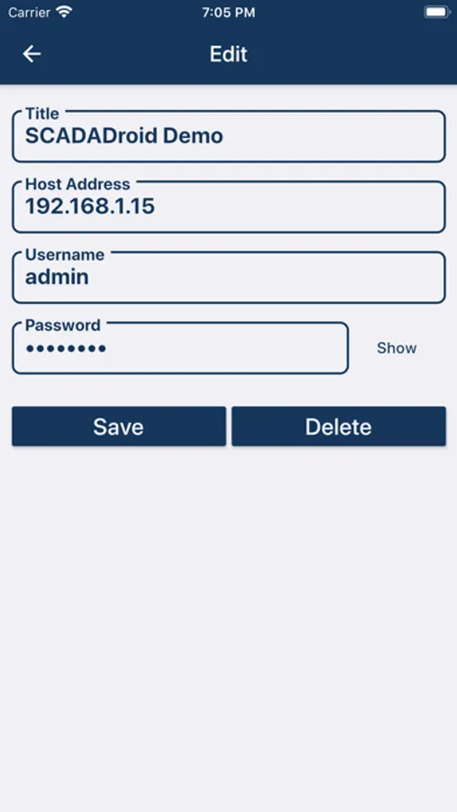 Have the ability to monitor data on your SCADADroid remotely through your smartphone. A lightweight, secure application for monitoring and changing the data, status and alarm variables from your SCADADroid.