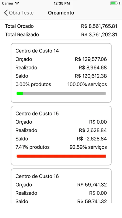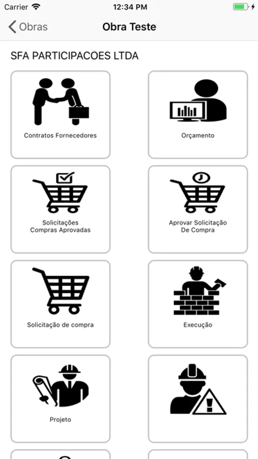 App para controle de obras em geral, controle orçamentário, contratos, licenças, eficiência de compras, cronograma de obras, cronograma de projetos, app integrado com ERP totvs.
