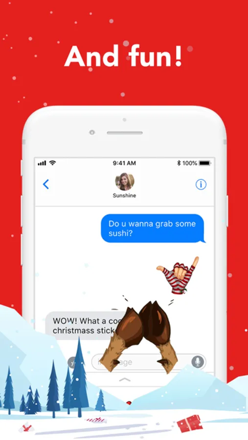 With new update we prepared some Magic Christmas spirit for this month with seasonal hand gestures. Enjoy cozy and funny hand signs and share your amazing Christmas mood with your friends, just send them a hand gesture when words simply won't do! Each sticker is painstakingly hand-drawn so that your friend knows you really care.