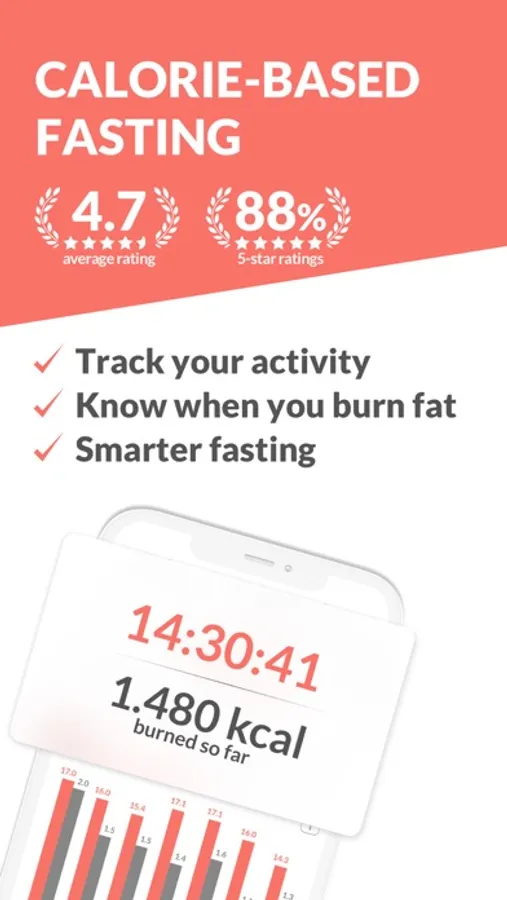 Use our advanced intermittent fasting tracker to track every fast and your progress - optionally you can enable HealthKit with our fasting tracker to track - besides hours fasted - also your activity like steps taken and especially calories burned during a fast (for example by using your Apple Watch). As your activity is a good indicator how much calories you burn during a fast this will help you adapt to different fasting protocols to improve your weight loss: