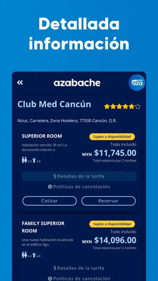 Cotiza disponibilidad y precios al instante.
