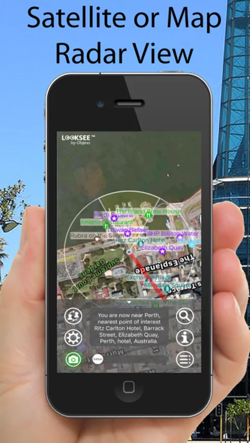 Looksee AR for Perth, Western Australia, is an Augmented Reality (AR) viewer used to find places of interest upto 10km away directly within your phone's camera view and add fun, knowledge and interest to your adventures and tours.