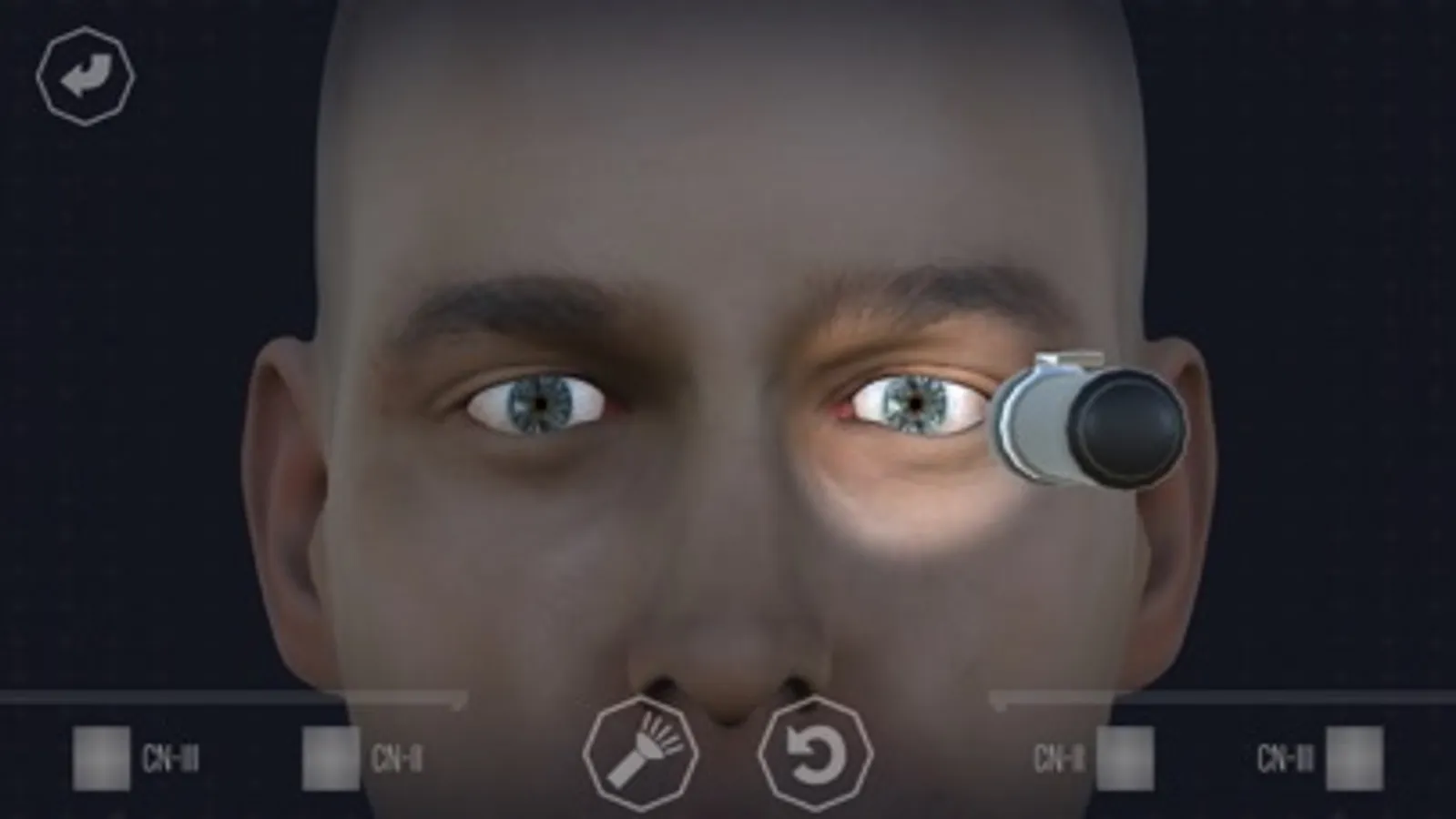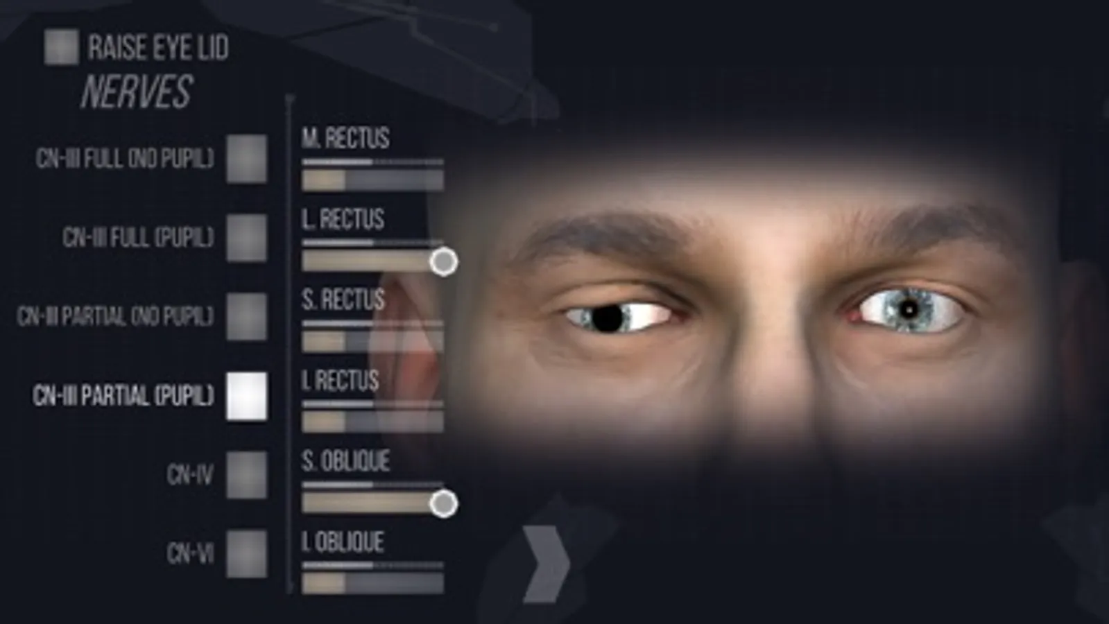 Simply touch the screen and the eyes will follow your finger. Use the sliders on the side of the screen to weaken individual muscles and simulate different conditions. By swiping left or right, you can find toggles to disable different cranial nerves. To access the pupil mode, use the flashlight button on the bottom.