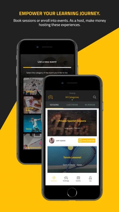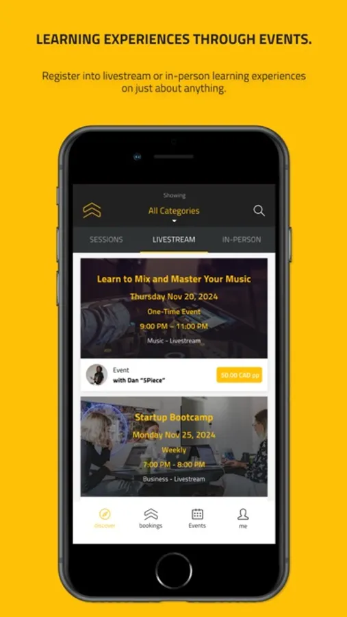 Welcome to Sessionz, the ultimate mobile app that revolutionizes how you connect with experts and learn directly from them. Browse our vast marketplace of learning possibilities taught and hosted by top professionals, all at your fingertips. Explore a diverse array of learning experiences, from being able to book private one-on-one session appointments, to registering for in-person and livestream events for yourself or if it's a learning experience event suitable for kids - for your child/children!