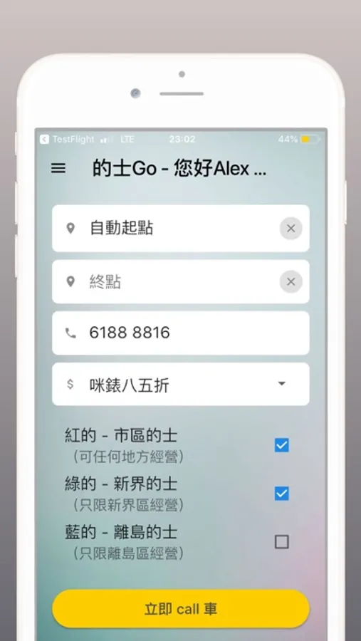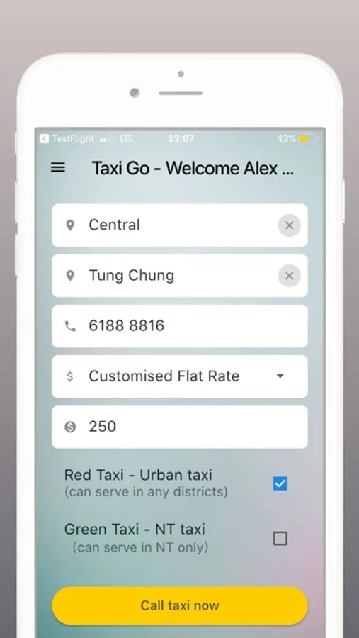 Could send a request to two types of taxis among: Urban Taxi, N.T. Taxi and Lantau Taxi AT THE SAME TIME