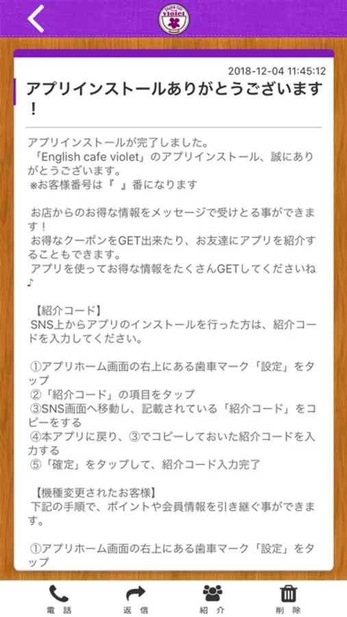 violetのアプリをSNSを通じてお友達に紹介する事ができます。