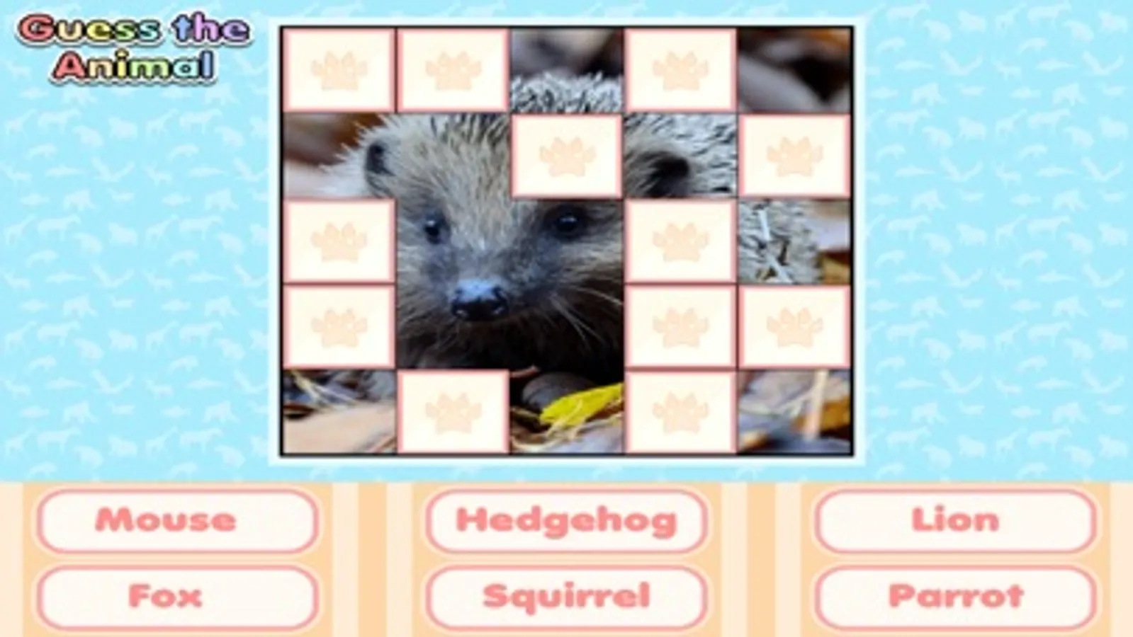 Name That Animal: Panels disappear to reveal a picture of an animal. Can you guess what it is?