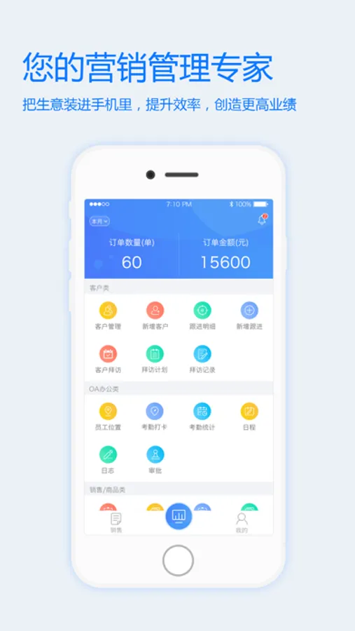 【物通云商】—您的营销管理专家,专注厂家、经销商、商超的订单管理与销售外勤管理,让工作随时随地都可控。以销售业务为核心,提供商品管理、销售订单管理、报表统计、客户管理、客户拜访与跟进、考勤打卡、到店签到等功能,把生意装进手机里,业务全部轻松搞定,既提升了工作的便捷度,又提高了效率,是创造更高业绩的利器!
