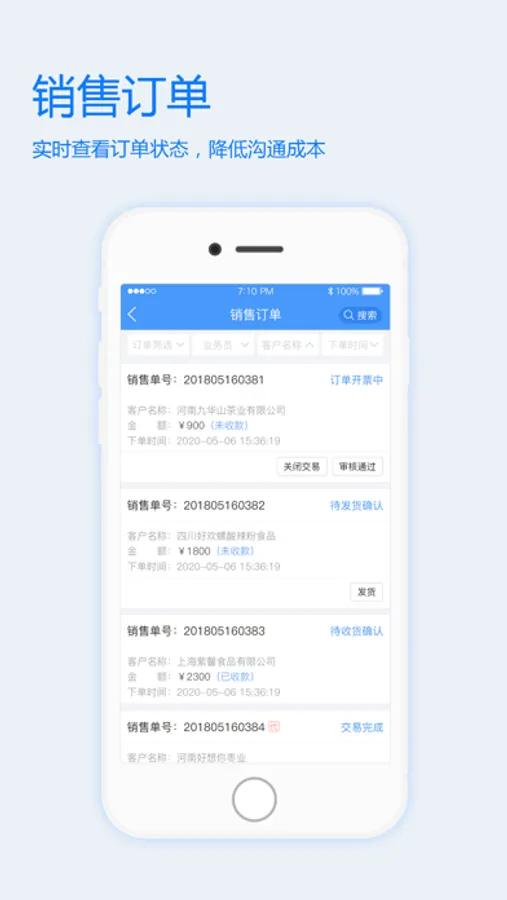 ● 销售管理:实时查看订单、退单状态,无需再想方设法了解单据进度,降低沟通成本,提升管理效率。销售管理自动化,减少错单、漏单、拖单等情况。