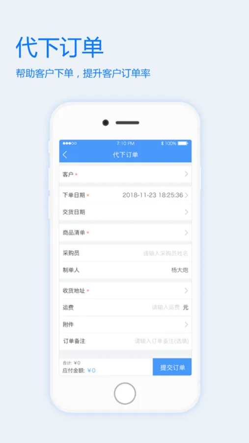 ● 代客下单:拜访客户,实时关注客户库存,帮助客户下单,提高客户订单执行效率和公司销售业绩。