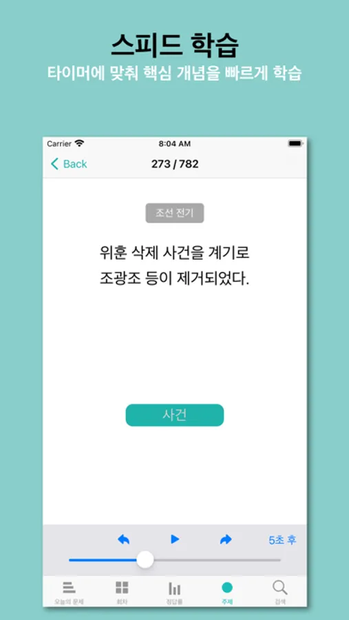 짧은 시간 내에 핵심 개념을 학습할 수 있는 스피드 퀴즈 기능을 준비했습니다.