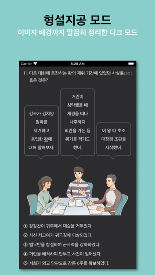기출 문제 하나하나를 모바일 앱의 화면에 맞게 최적화했습니다.