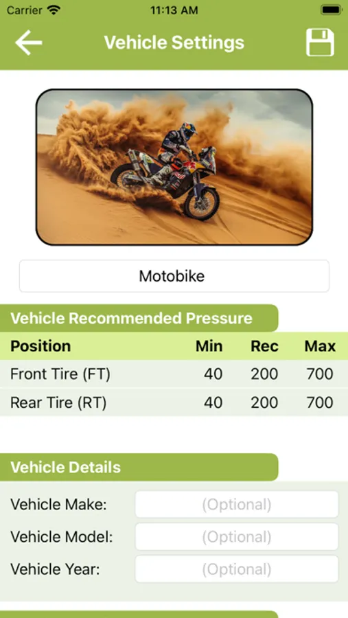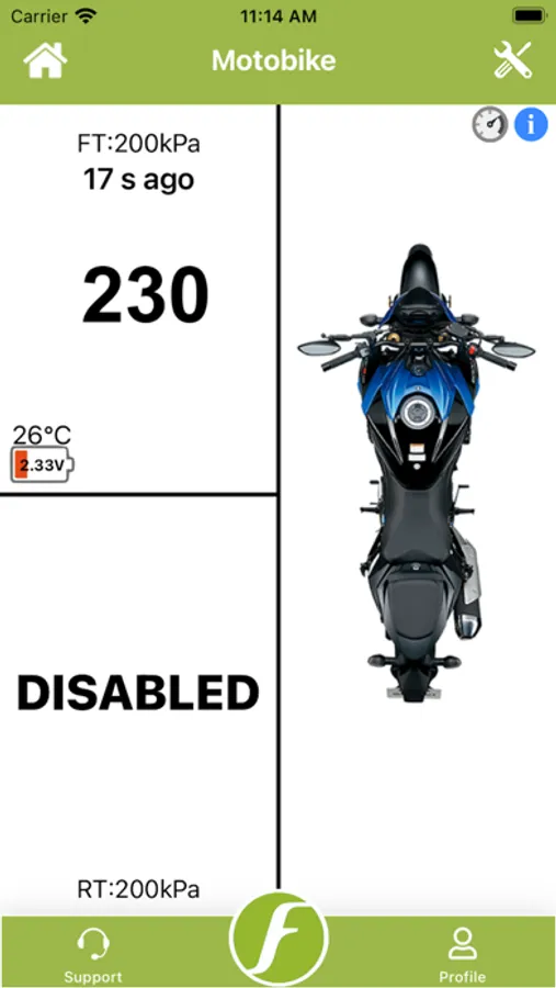 * Monitor tire pressure in real time while riding or stationary within Bluetooth range,