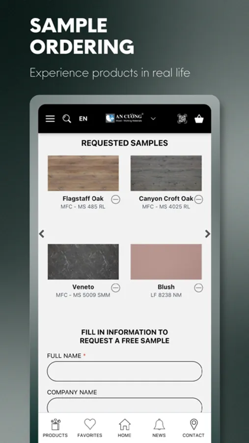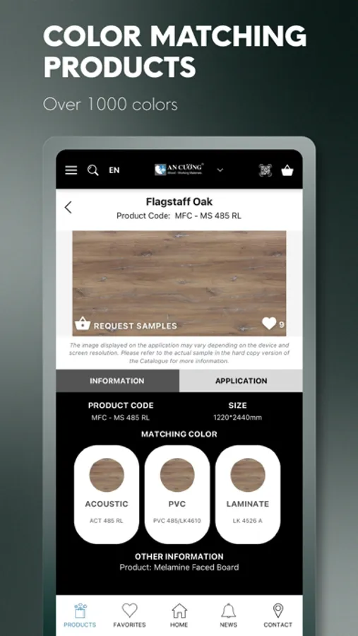 Introducing the An Cuong’s AC Library App, your gateway to a world of possibilities in the furniture industry. Explore over 1000+ products with ease, order free samples, and stay ahead of the latest news and trends. Step into a seamless mobile experience with our sleek and intuitive interface. Effortlessly scan QR codes from our catalogues to receive comprehensive product details. Discover matching-color options, available sizes, and captivating inspirational applications that will elevate your design visions to new heights. Seamlessly curate your favorite colors and patterns for future reference or effortlessly add them to your basket to receive a personalized sample.