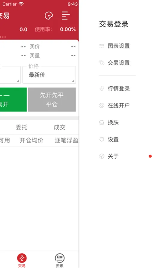 混沌天成易星APP,可查看国内外交易所合约品种信息,价格信息;支持K线查看功能,可查看具体合约的K线详细信息以及各项指标;支持期权T型报价查看功能;支持自选合约功能,可自定义收藏合约;支持混沌天成CTP,混沌天成易盛、混沌天成仿真登录及交易功能,相关的交易列表以及资金显示功能。