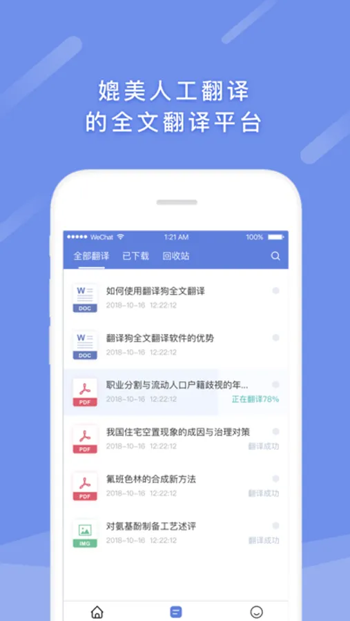 翻译狗是杭州轻寻科技有限公司旗下运营的翻译平台,是一家专注于行业数据服务的高科技企业。公司本着以“专注于创新”的企业理念致力于通过大数据、人工智能、移动互联等技术,为各领域用户提供人工智能翻译服务。
