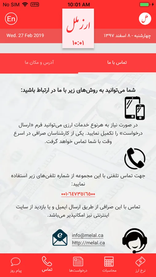 By using our mobile application you can get informed about the latest Canada wide exchange rates and currency services provided by Melal Exchange.