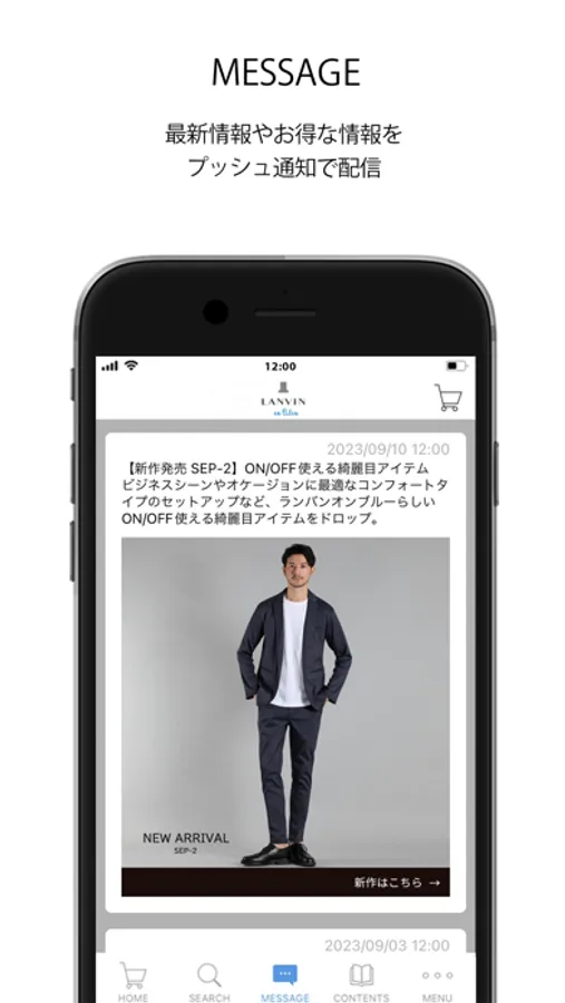 ブランドの新作アイテム入荷やお得な情報をプッシュ通知でお知らせします。
