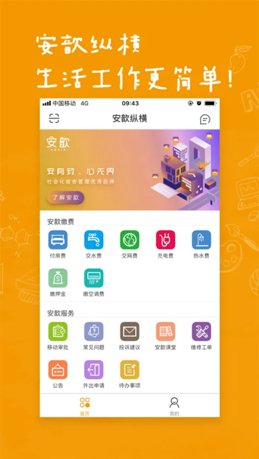 国内首个专业连锁型社会化共享员工公寓服务平台。目前覆盖上海、北京、广州、深圳、杭州、武汉、南京等一线城市,本着为企业青年员工找到城市归属感,解决城市租房压力及安全的社会问题,为他们打造城市生活的“第二个家”。安歆·寓保留传统员工公寓的硬件基础,采用智能化设施设备,整合安歆·寓专属客户端完成缴费,预订床位等基础服务,让用户体验互联智能的城市生活,致力于为企业提供酒店式、连锁化、专业性的“一站式”员工住宿服务。