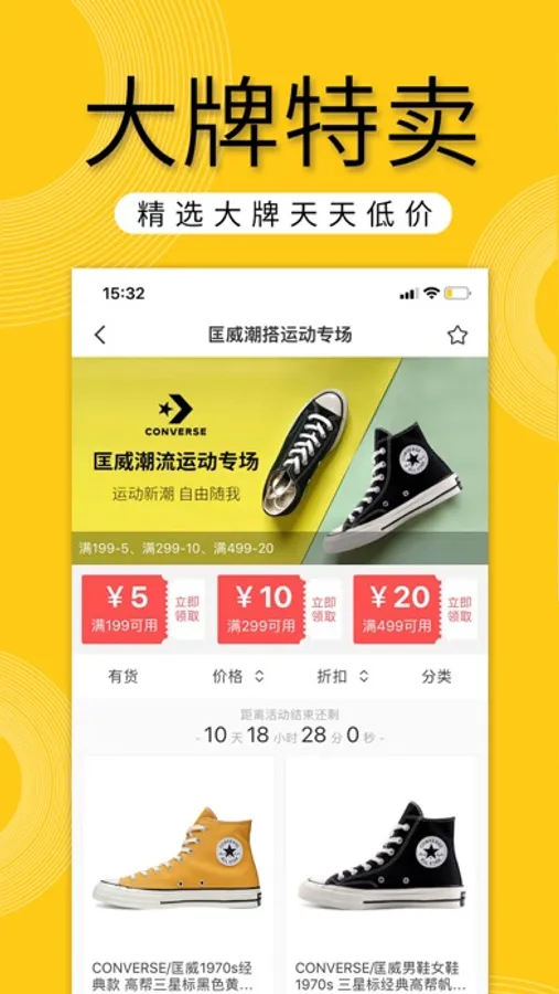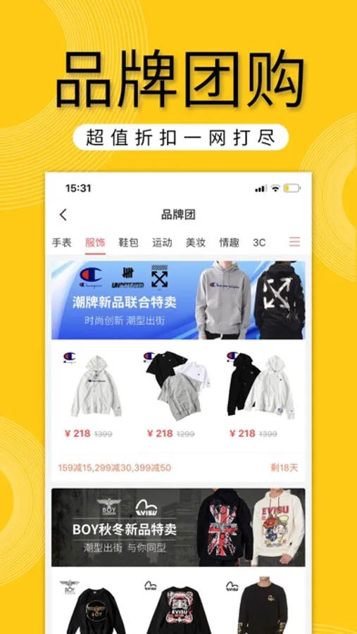 潮流服饰、大牌鞋包、时尚美妆、3C钟表等皆有深度折扣,轻松买潮牌。