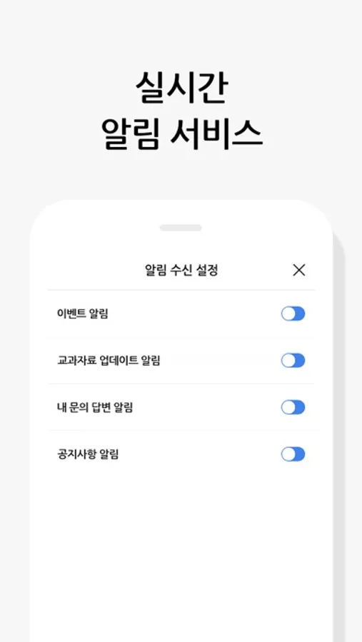 내 교과 자료가 업데이트 될 때마다 실시간으로 알림을 보내드립니다(알림 설정 사용 필요). 교과자료 외에도 선생님 전용 이벤트와 특강, 주요 공지사항 및 문의 답변 등 비바샘만의 수준 높은 맞춤형 서비스를 경험하실 수 있습니다.