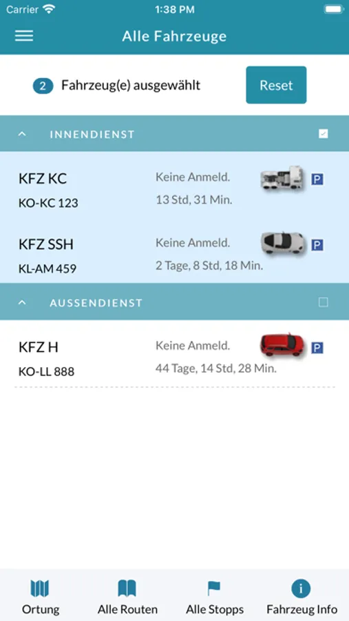 - detaillierte Fahrzeuginformationen für mehrere ausgewählte Fahrzeuge