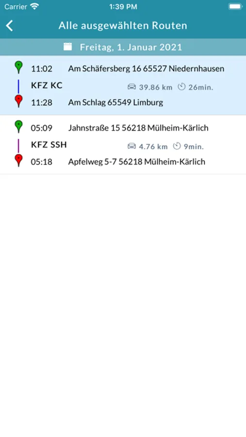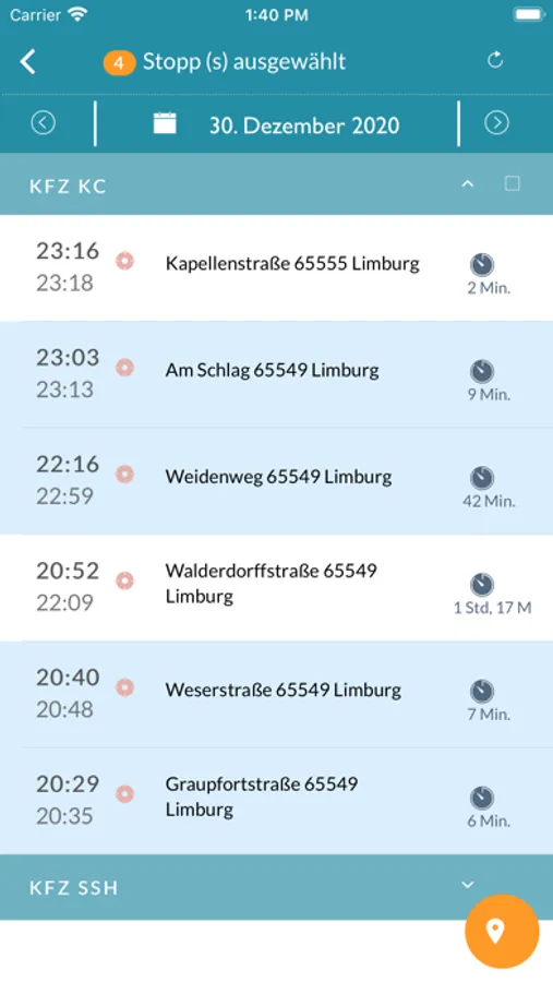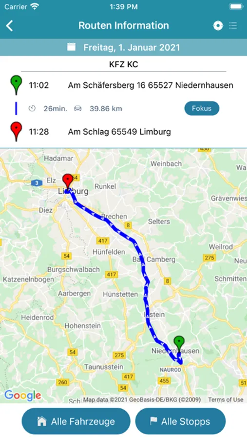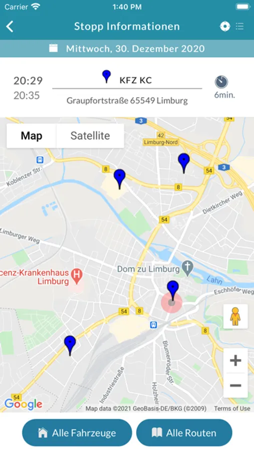 - vollständige Routeninformationen für jede Fahrt in der Kartenansicht