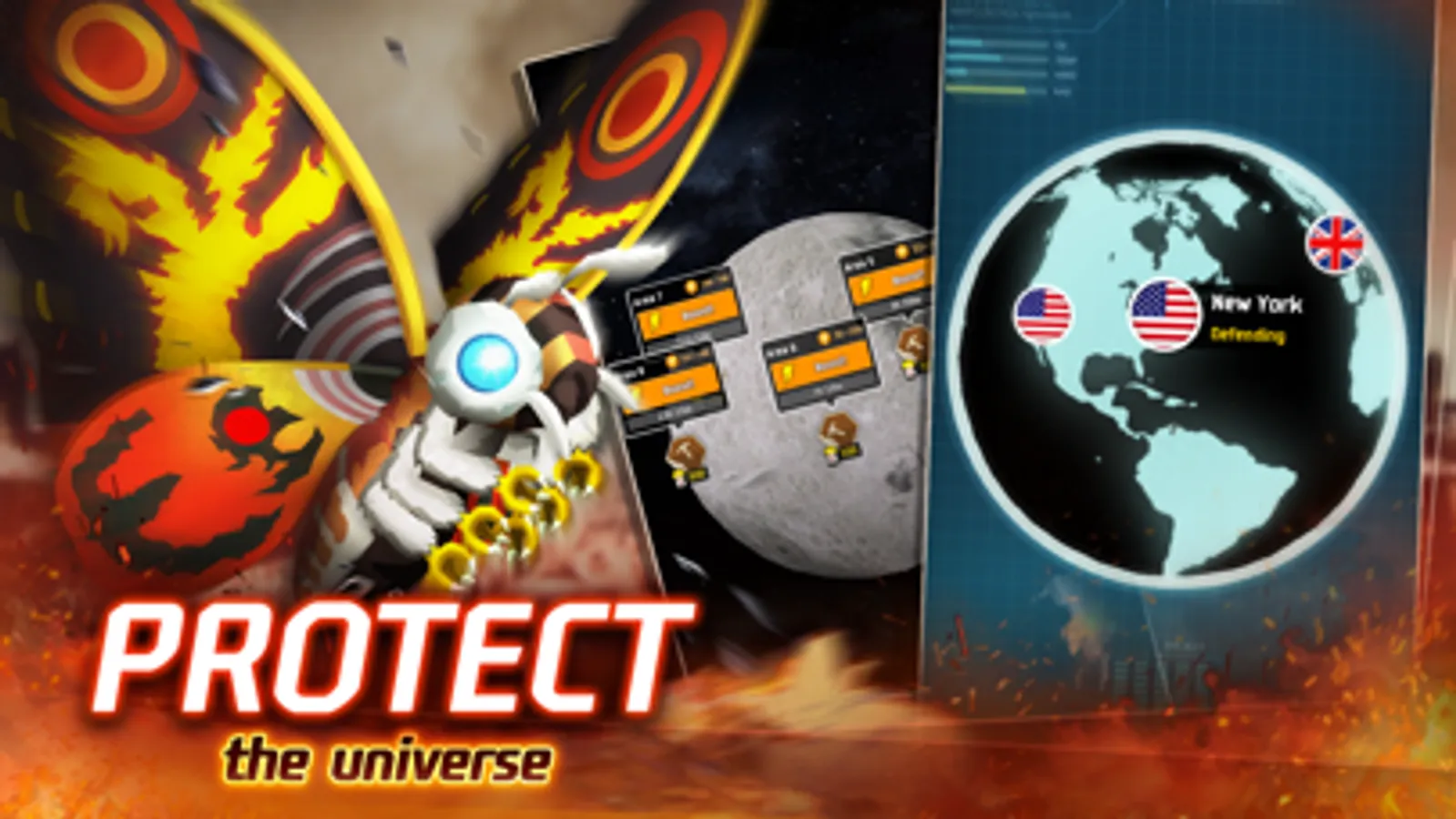 Defend cities around the world against gigantic kaiju! Monsters from across the Godzilla series are on a rampage, and it's up to you to defend, defeat and recruit these powerful beasts to save the world!